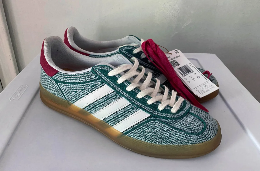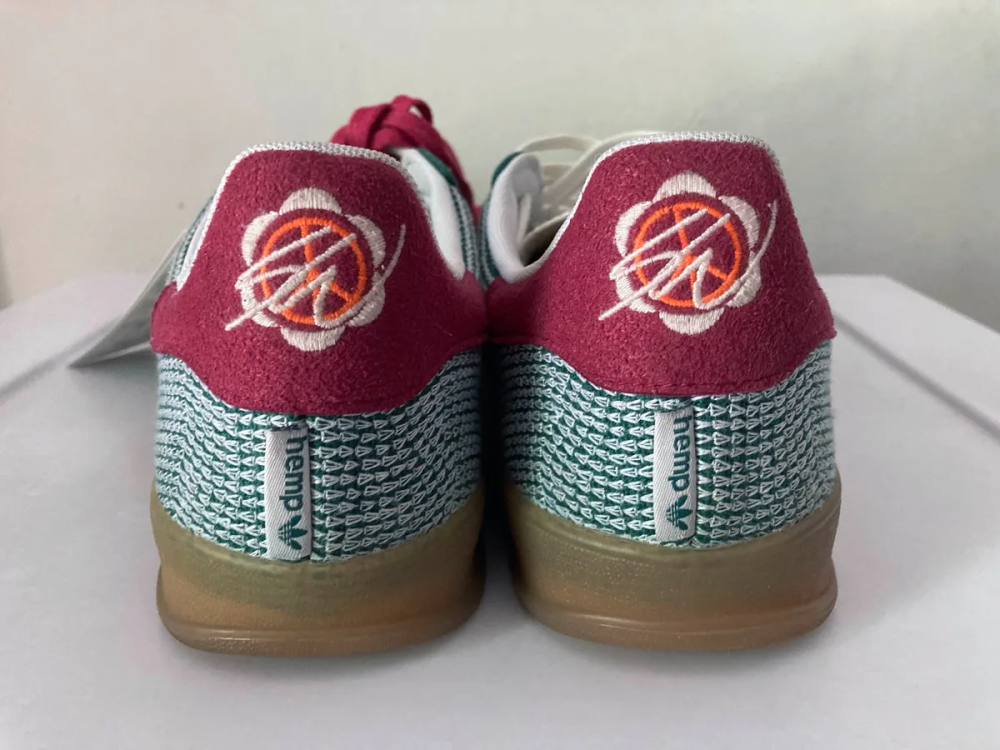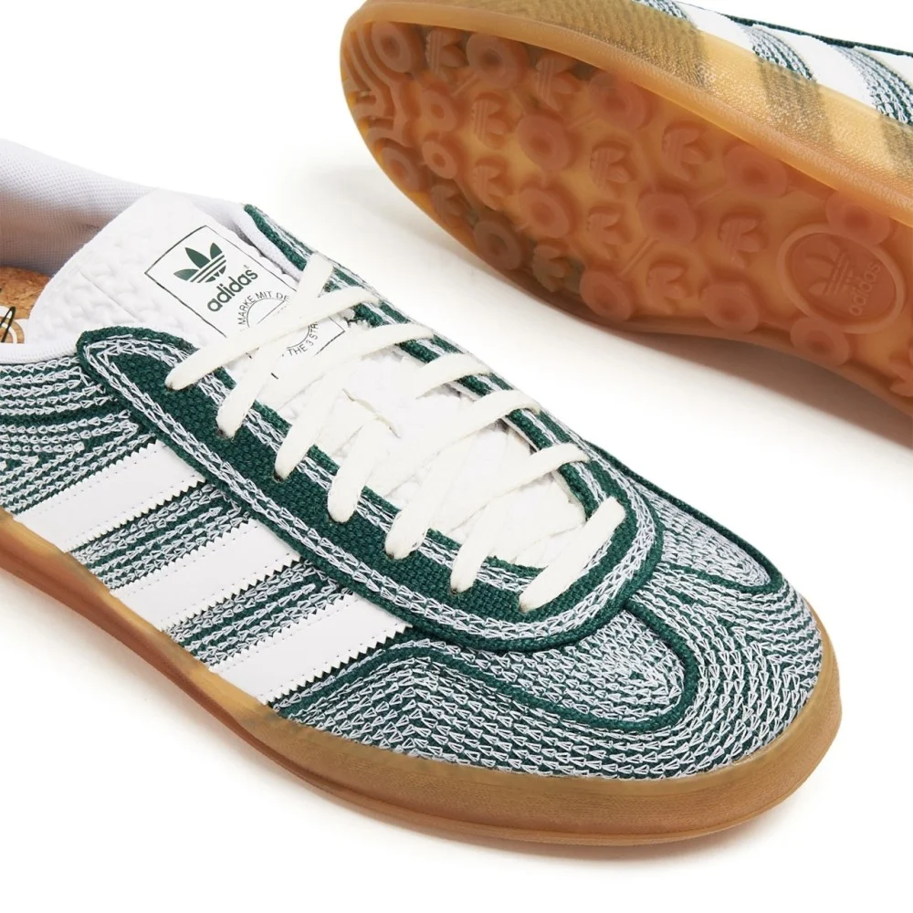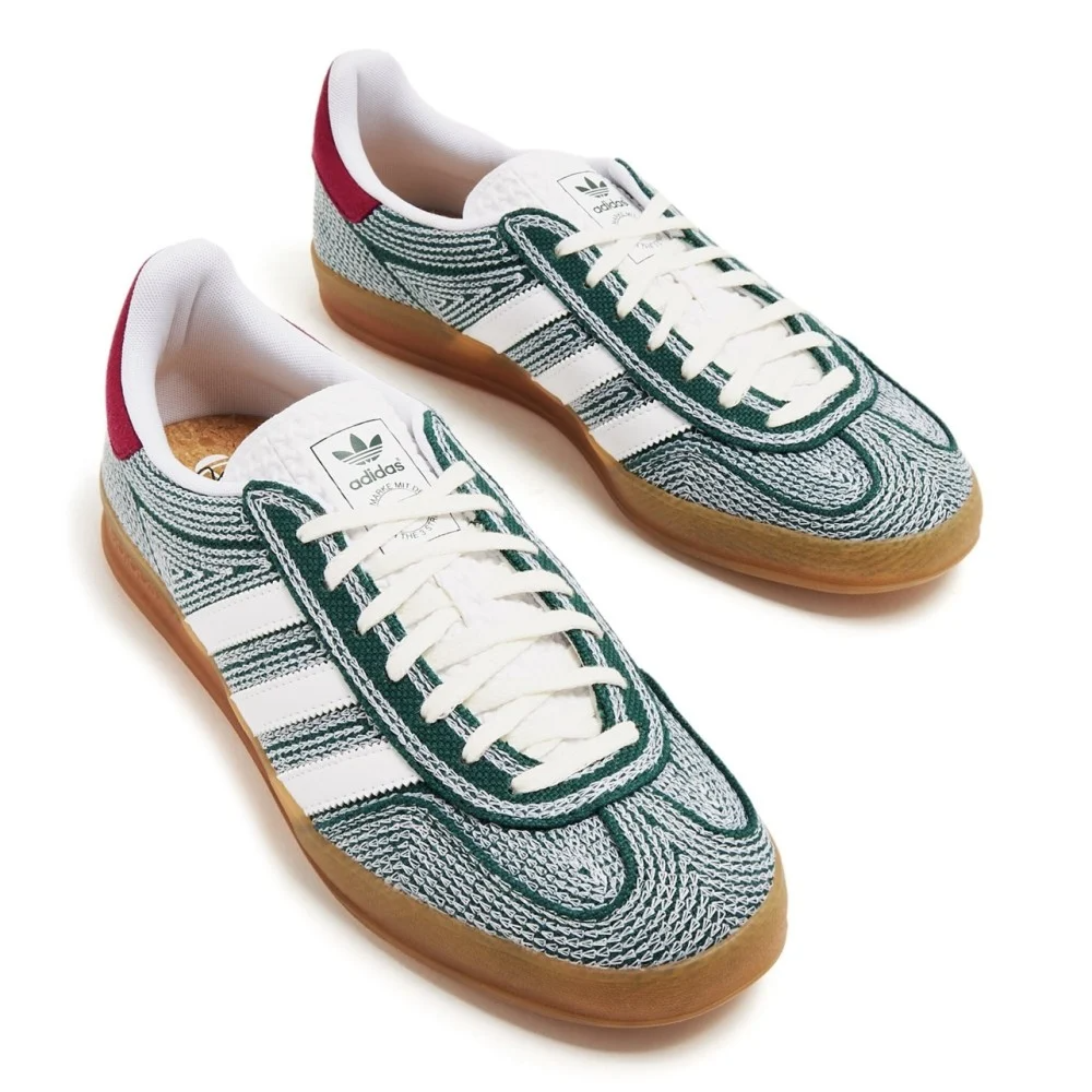تتعاون أديداس مع شون وذرسبون لتُعيد تقديم سنيكرز جازيل اندور الشهير بنعل مطاطي مع مقدمة على شكل حرف "T"، خطوط ولسان باللون الأبيض وملصق بشعار العلامة.