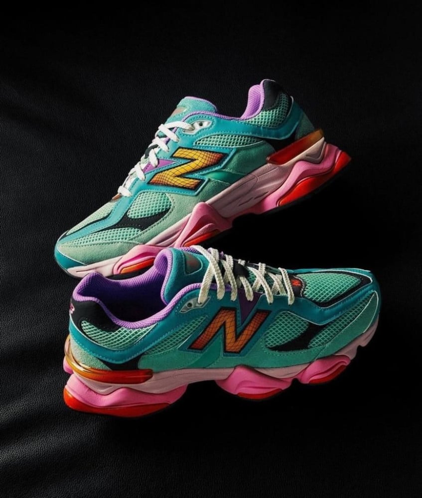 يظهر New Balance 9060 الآن بتكوين مختلط "متعدد الألوان" - باللون الأخضر والأزرق والوردي والأرجواني والأحمر. صُنع الزوج من مزيج من الجلد المدبوغ والألواح الشبكية للتهوية ومُعزز بشعار "N" المتباين على الجانبين. تحته ، تكمل وحدة ABZORB الوحيدة التصميم.