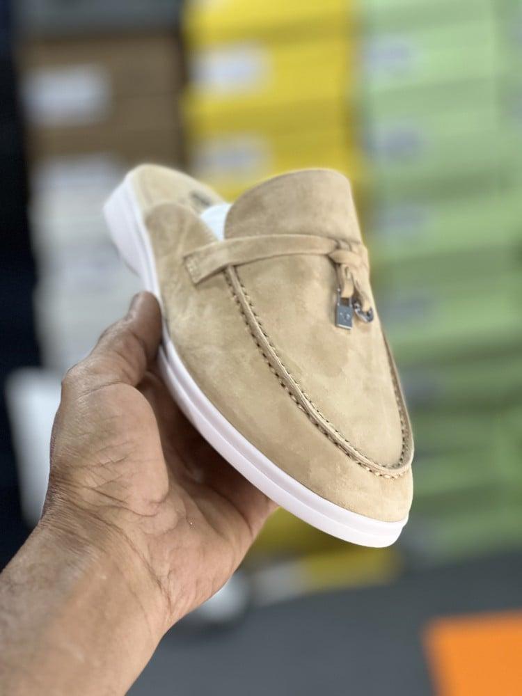 أضيفي لمسة فاخرة إلى إطلالتك مع هذا الحذاء الموكاسين من لورو بيانا، فهو يأتي بتصميم سهل الارتداء مصنوع من الجلد السويدي الناعم والمريح للغاية. ا